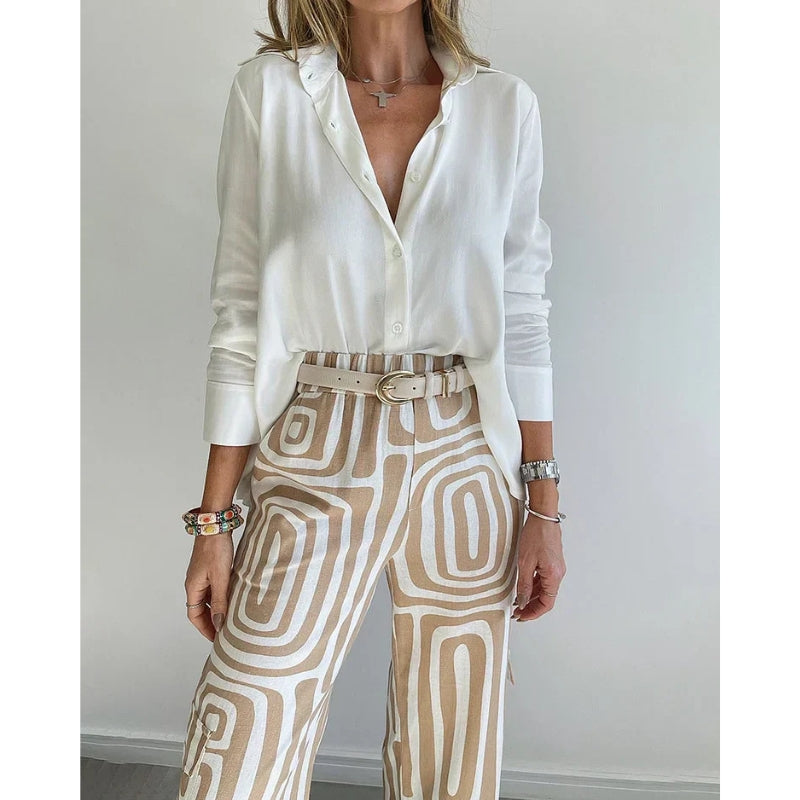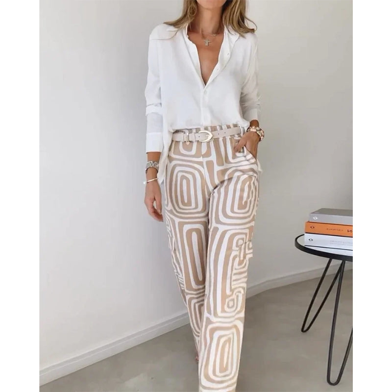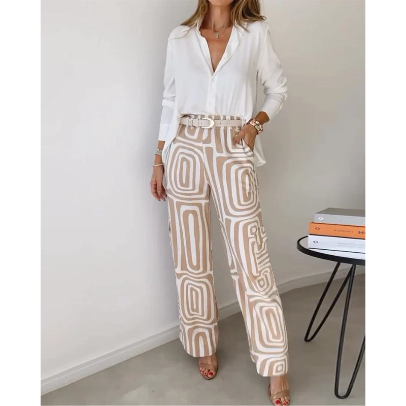 Struggle to find matching outfits every morning? This autumn fashion 2-piece set makes getting dressed easy. It comes with a stylish printed top and matching wide-leg pants that always look great together. Perfect for working women who want comfort and style—because confidence shouldn’t be stressful.